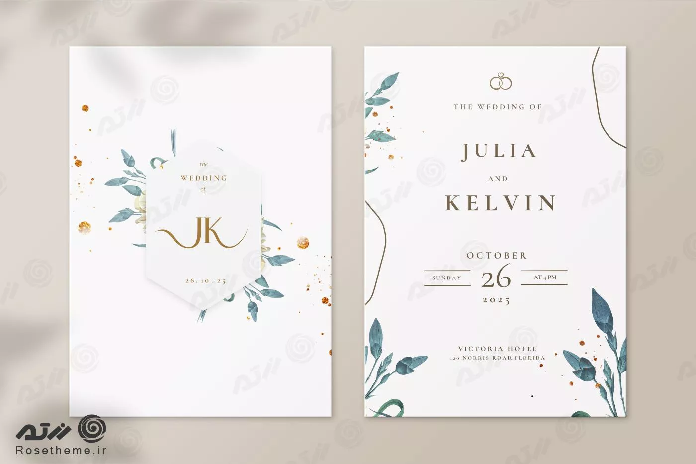 فایل PSD قالب دعوتنامه عروسی با برگ های آبرنگی زیبا 27413