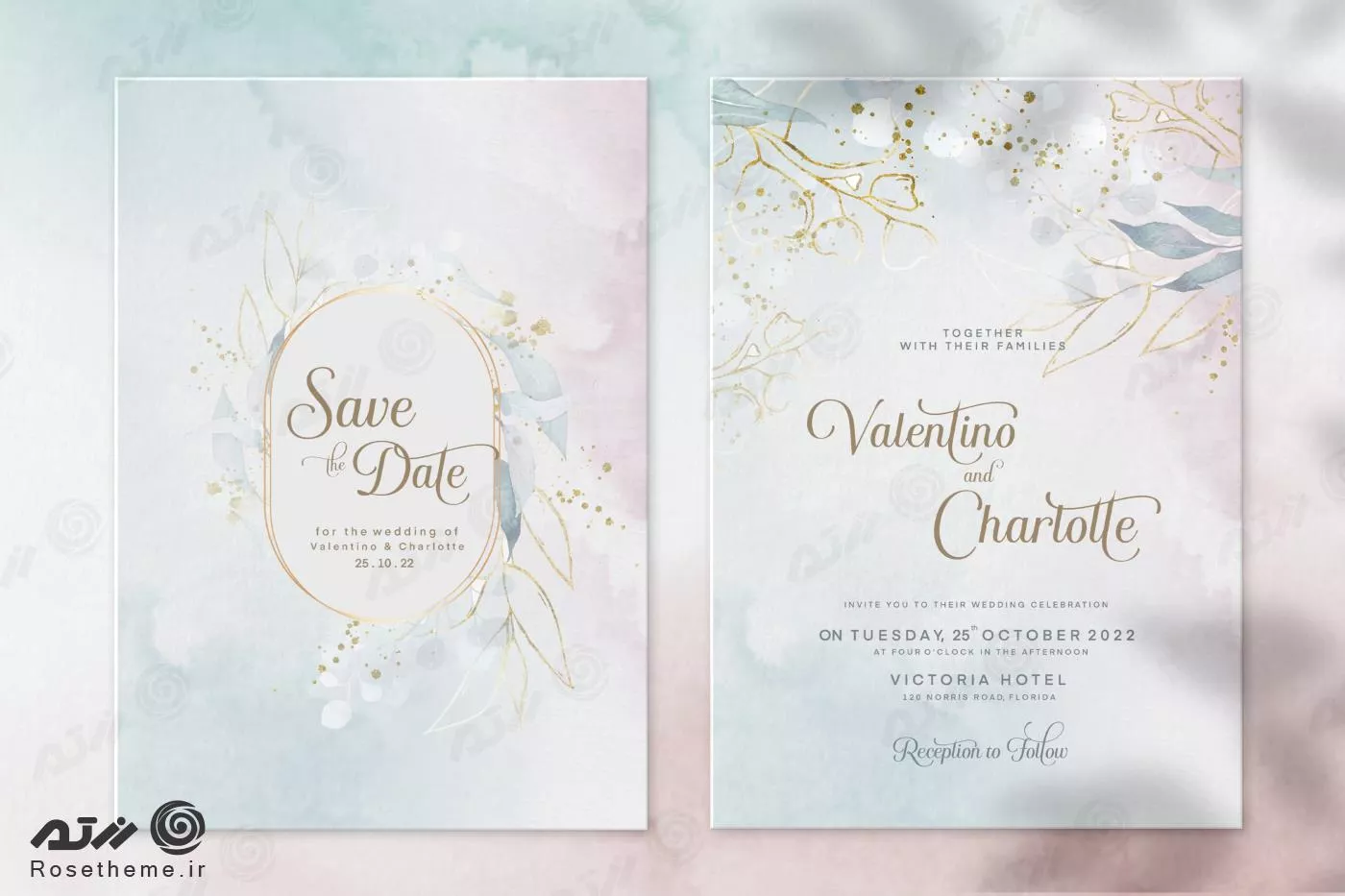 فایل PSD قالب دعوتنامه عروسی با برگ های آبرنگی زیبا 27413