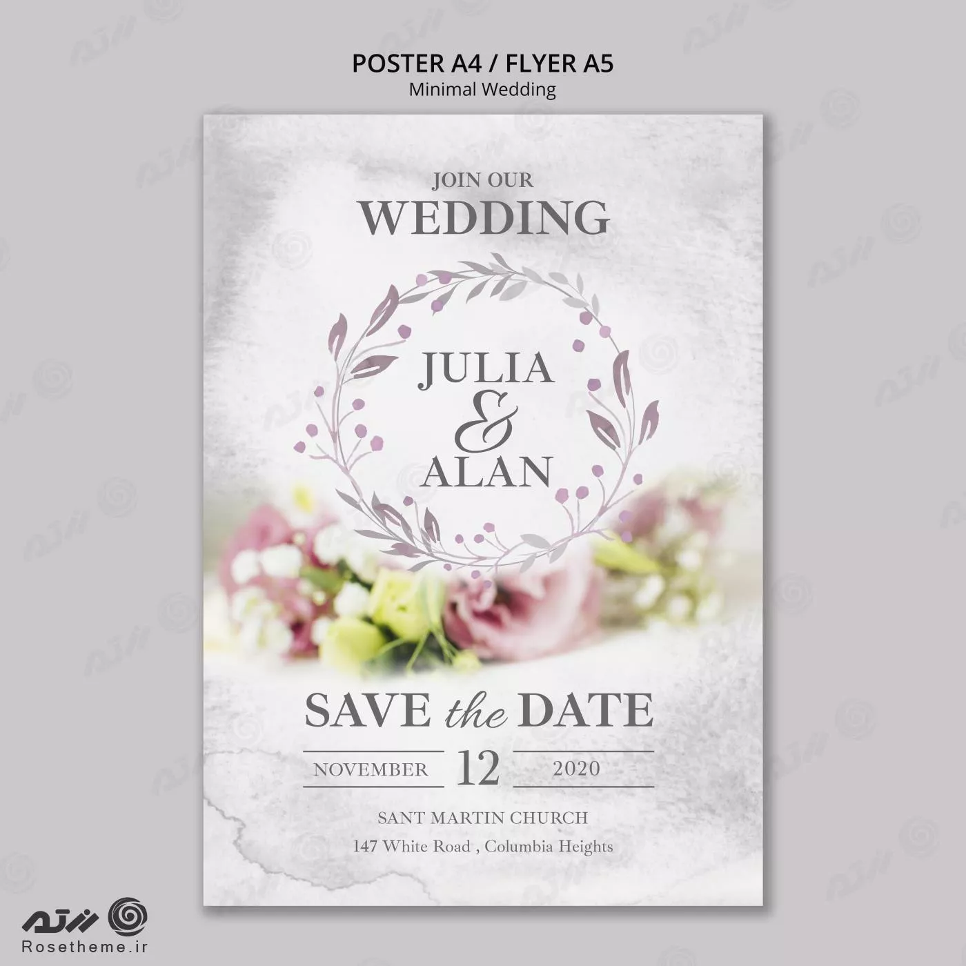 فایل PSD قالب مینیمال فلورال کارت عروسی 27366