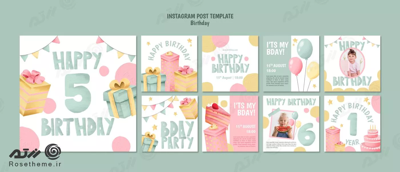 فایل PSD مجموعه پست های اینستاگرام جشن تولد 28058