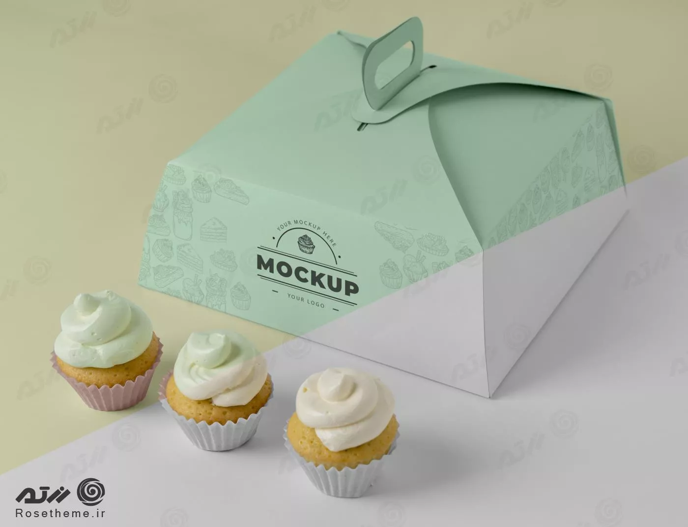 فایل PSD موکاپ طراحی جعبه کاپ کیک 28106