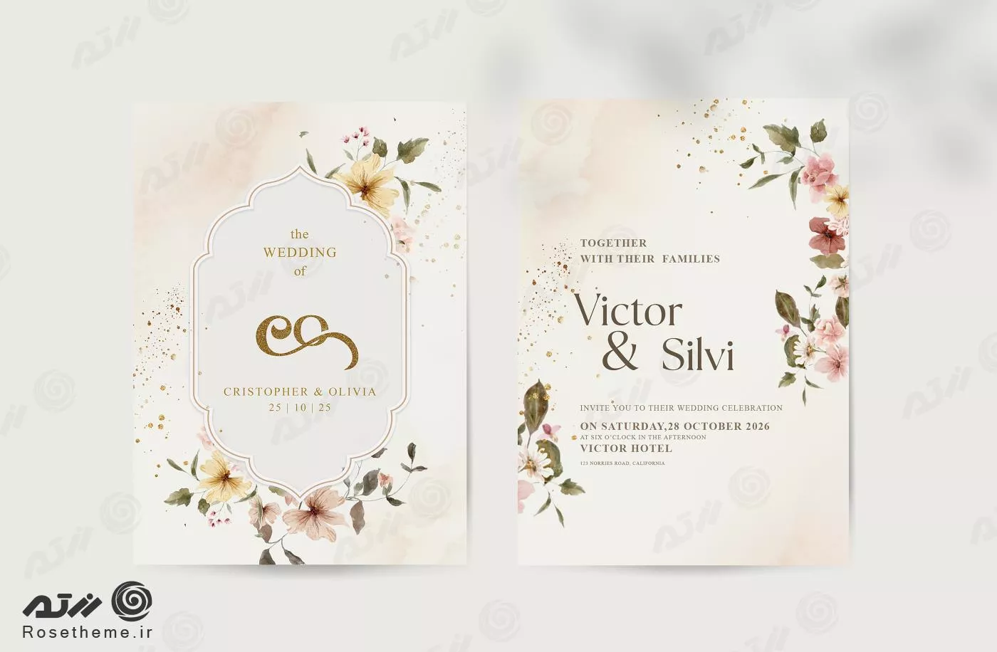 فایل PSD قالب کارت دعوت عروسی گل‌های آبرنگی 27400
