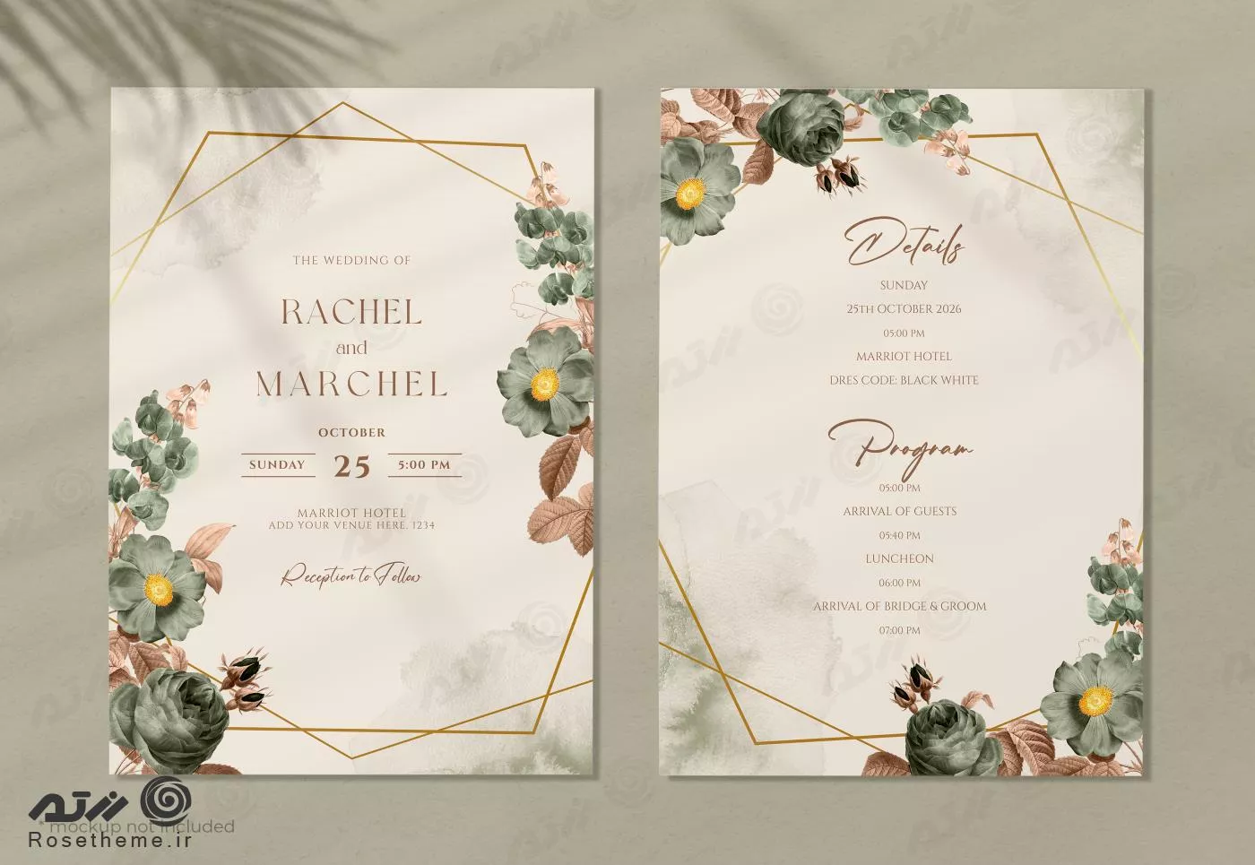 فایل PSD کارت دعوت عروسی زیبا با طرح گل های کلاسیک و شیک 27341
