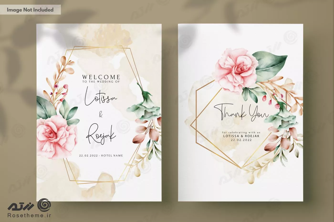 فایل PSD قالب کارت دعوت عروسی گل‌های آبرنگی 27400