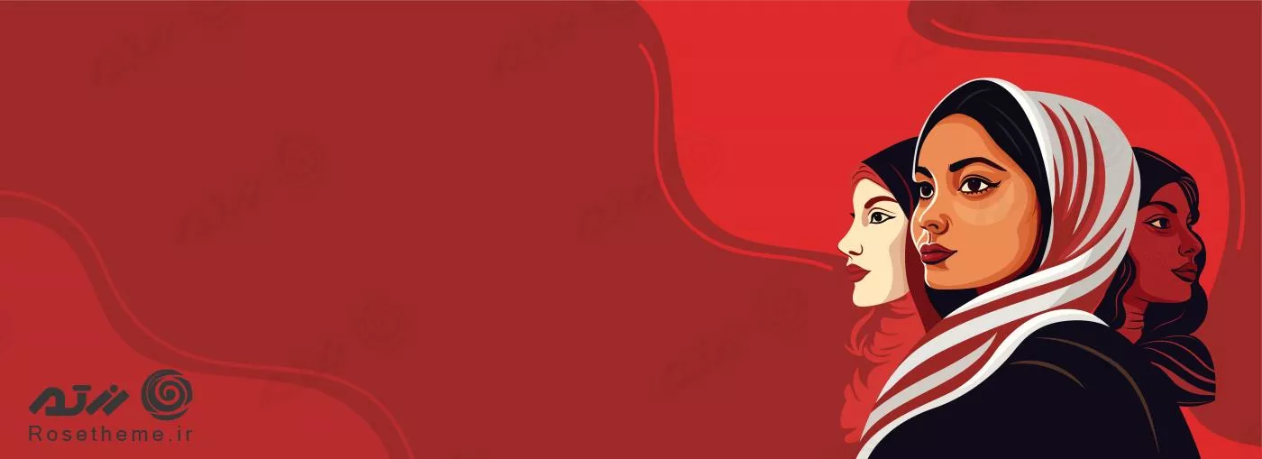 وکتور EPS تصویرسازی سه کاراکتر زن جوان ایرانی روی پس زمینه قرمز سوخته با فضای خالی، مفهوم روز زن 27525