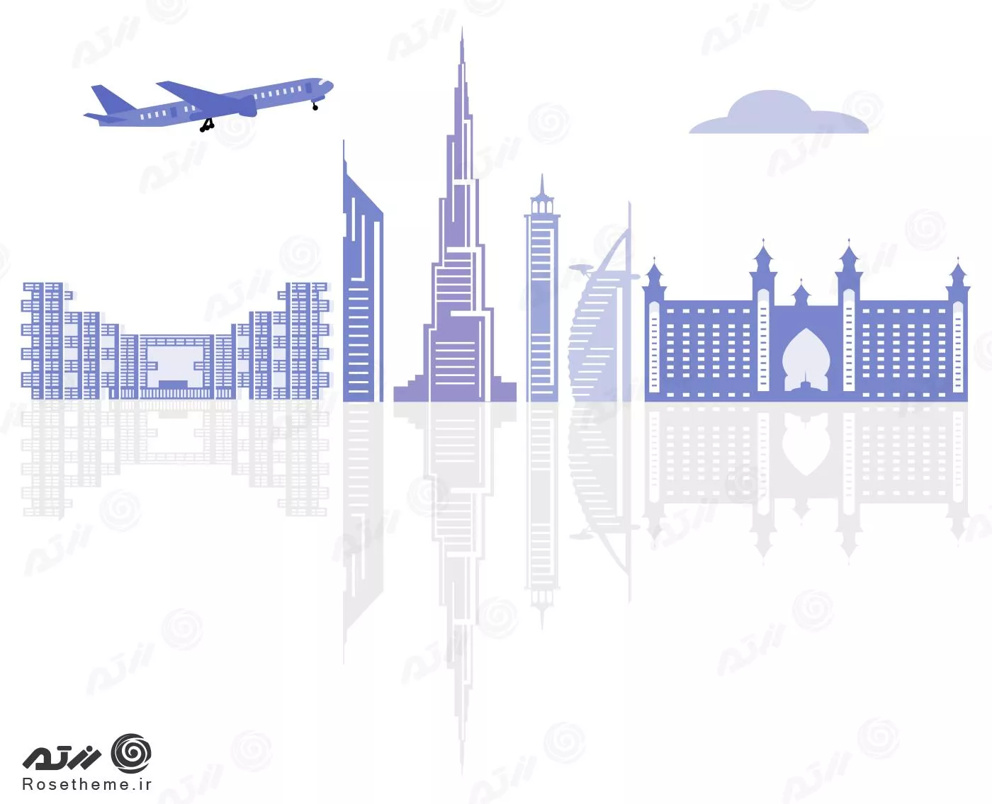 وکتور EPS تصویرسازی مسطح کارتونی آسمان خراش های شهر دبی برای پس زمینه وب 27510
