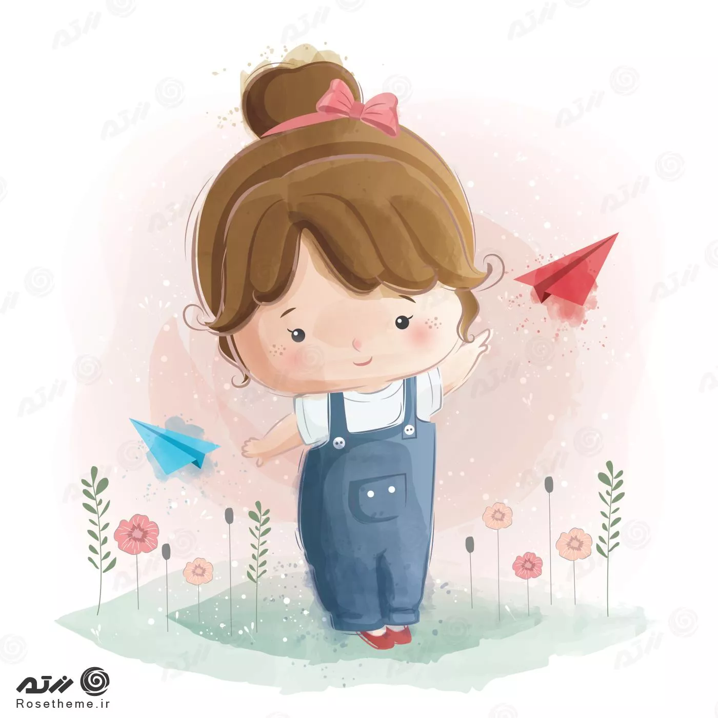 وکتور EPS دختر بامزه در حال بازی با هواپیمای کاغذی 27240