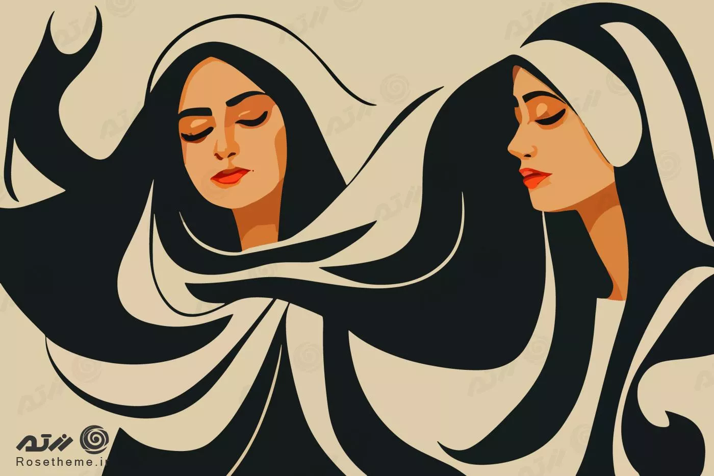 وکتور EPS دو زن ایرانی با حجاب و چشمان بسته در رنگ‌های سیاه و سفید 27559