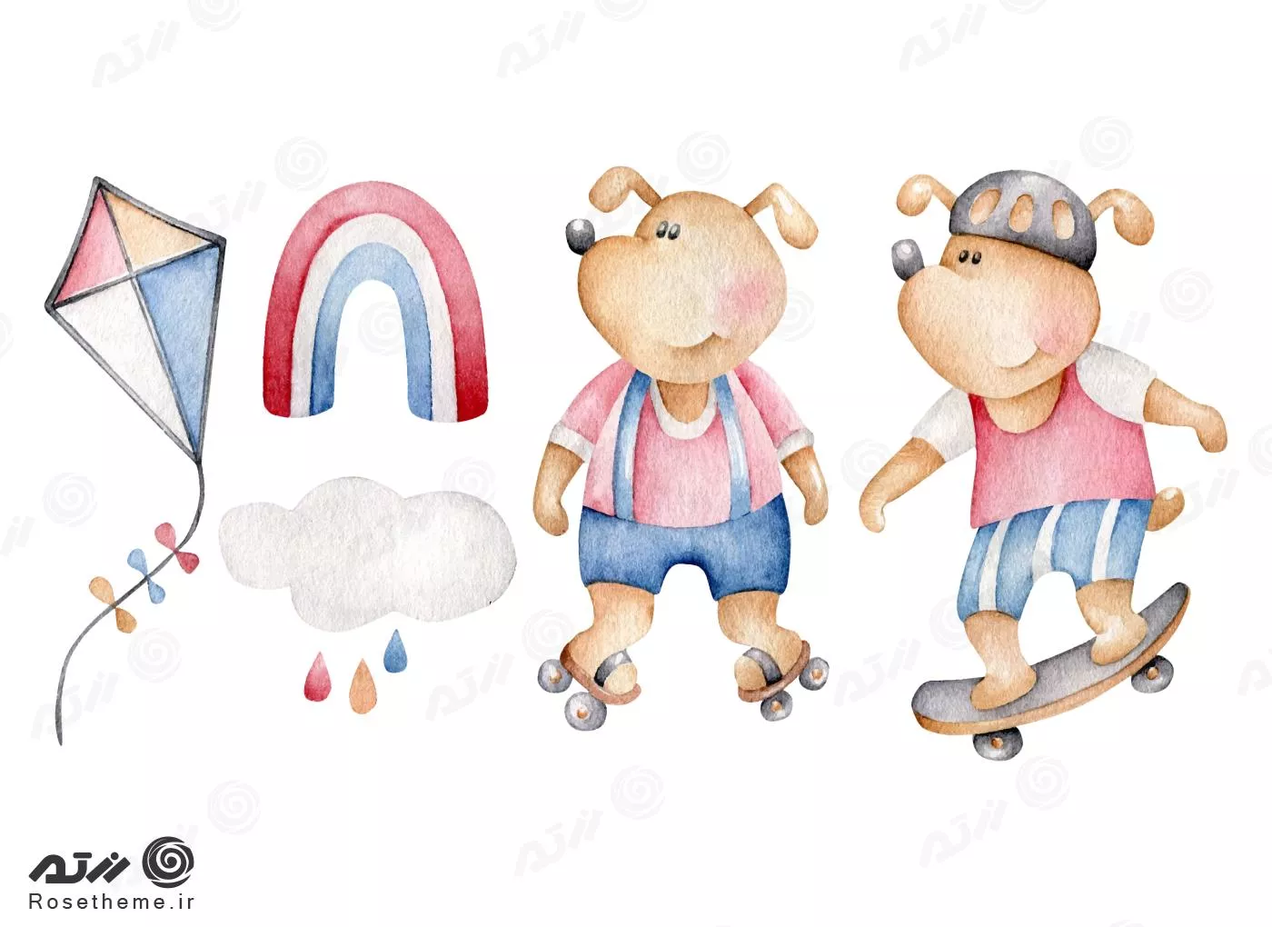 وکتور EPS مجموعه نقاشی‌های آبرنگ از المان های بامزه 27324