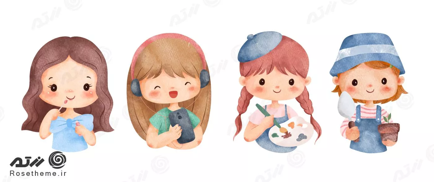 وکتور EPS مجموعه تصویرسازی آبرنگی دختران بامزه 27286