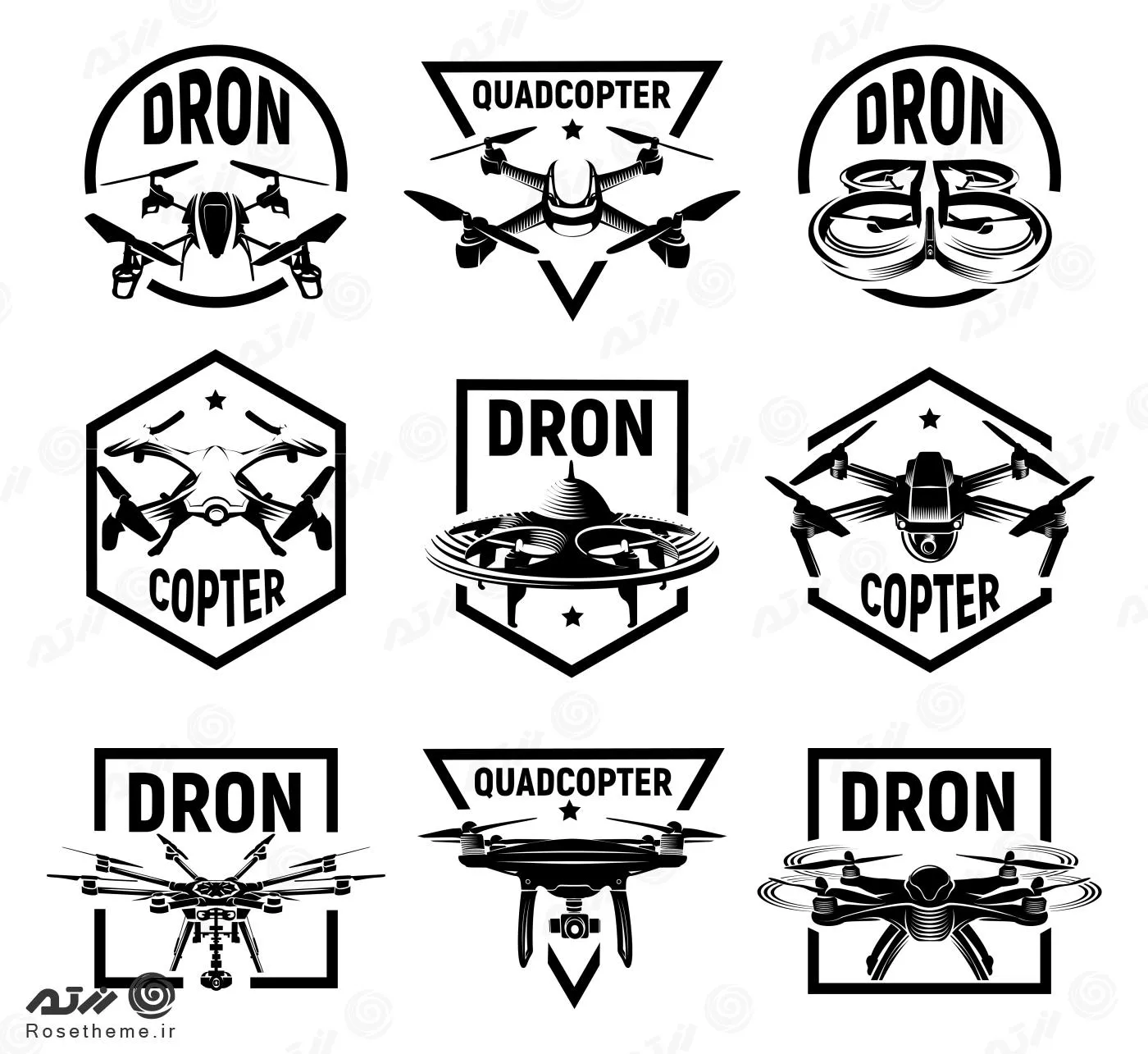 وکتور EPS مجموعه لوگوهای تک رنگ کوادکوپتر ایزوله 27956