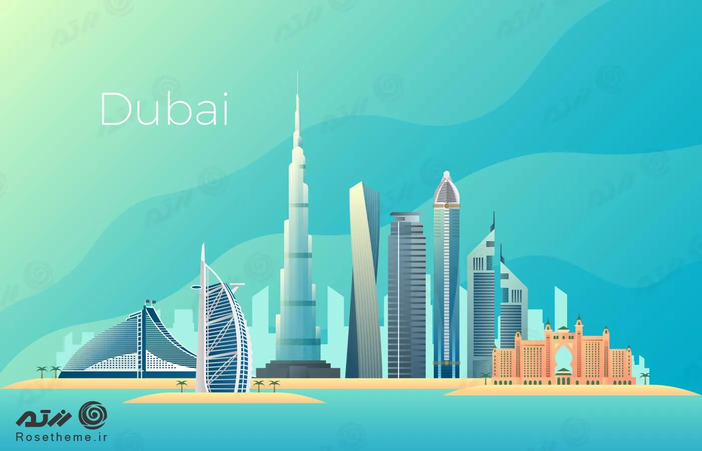 وکتور EPS نمای ساحل دبی روز آفتابی امارات متحده عربی 27563