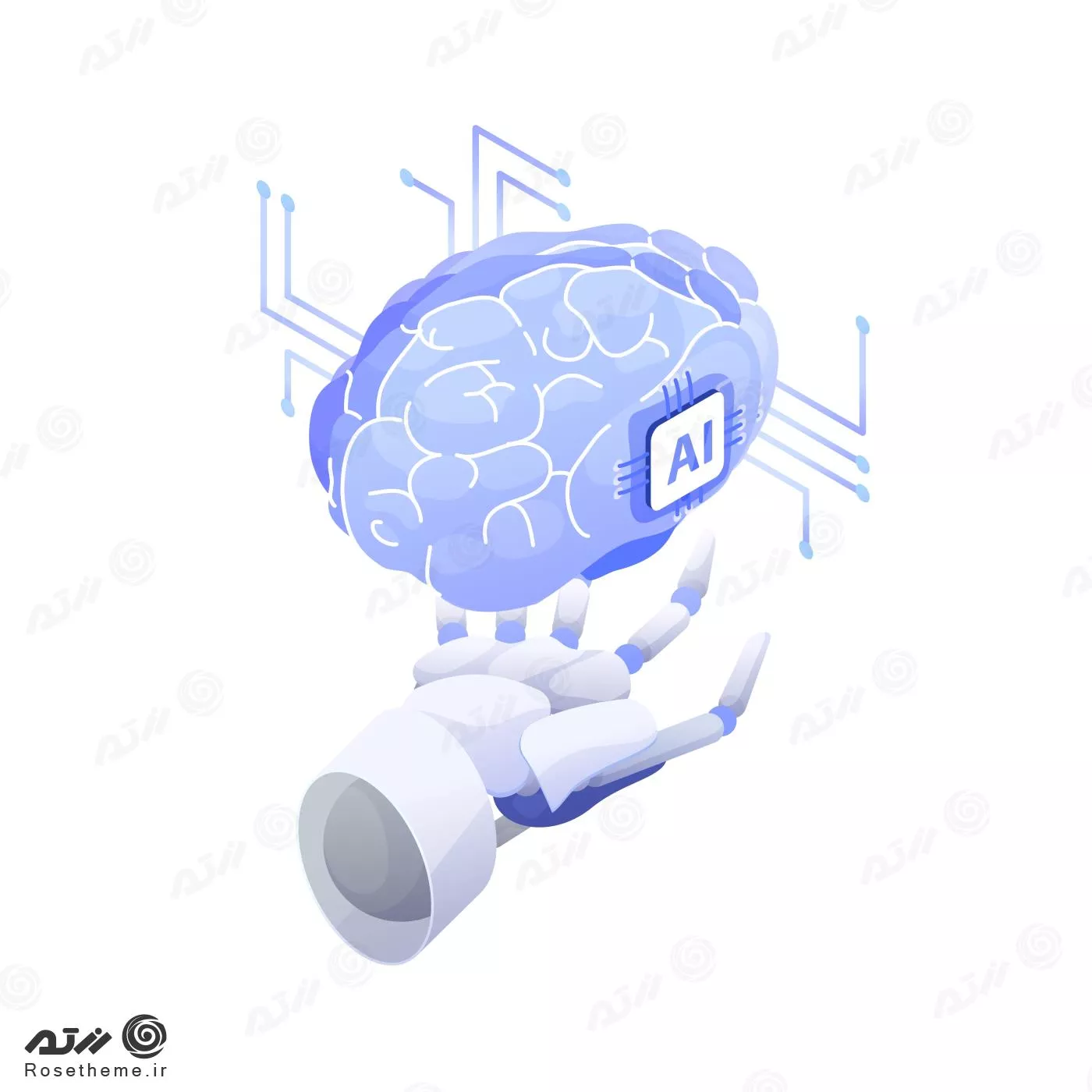فایل PSD تصاویر آیکون سه بعدی مغز با مدار های الکتریکی ، تصویر سازی هوش مصنوعی 28070