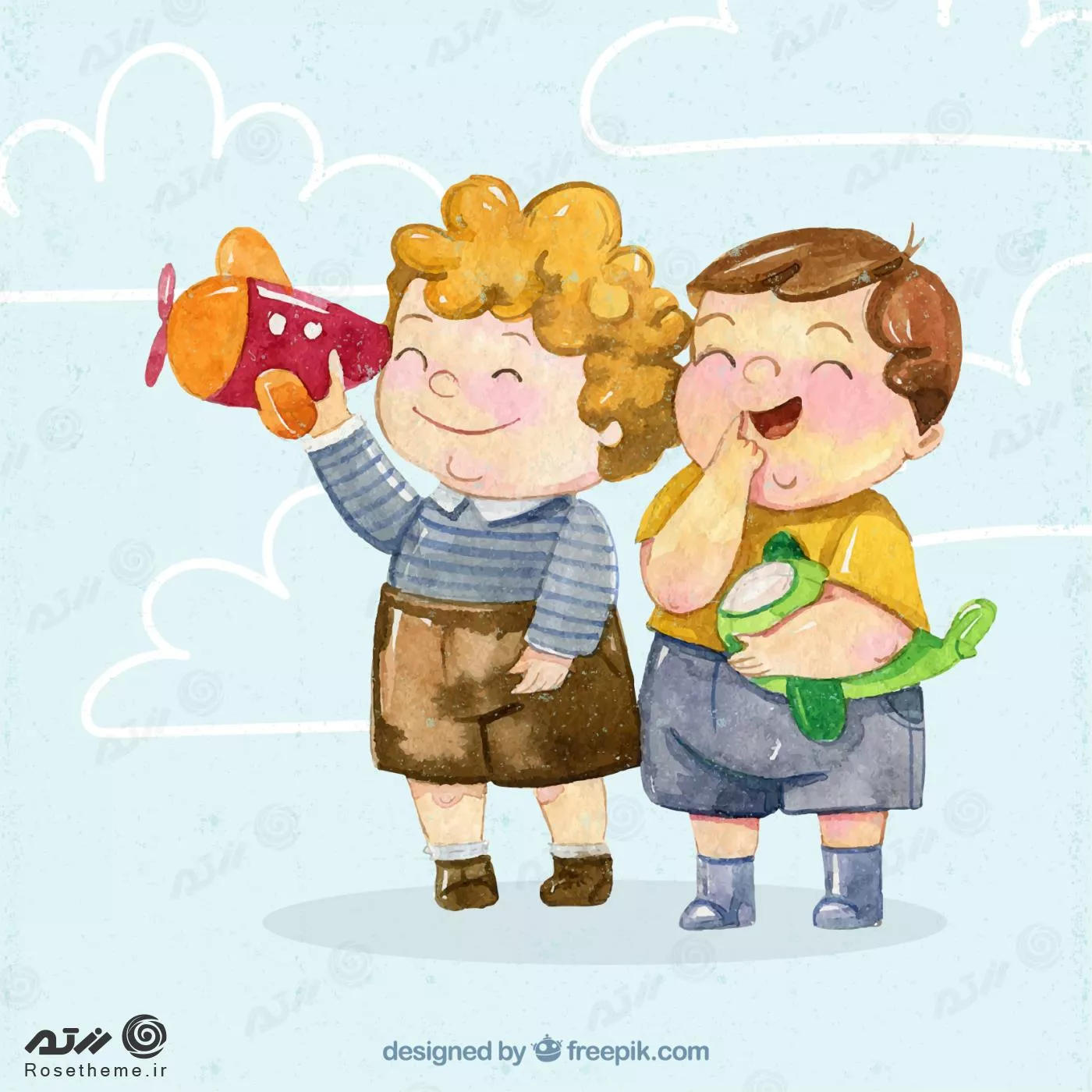 وکتور EPS و AI پس زمینه آبرنگی دوستان در حال بازی با هواپیما 27268