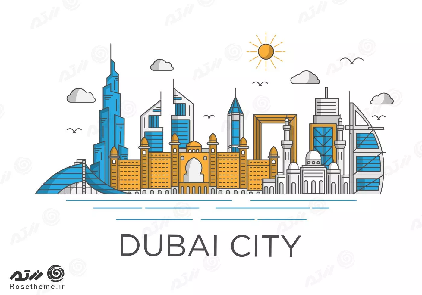 وکتور EPS پس زمینه خط آسمان شهر دبی با مفهوم نمادین 27515