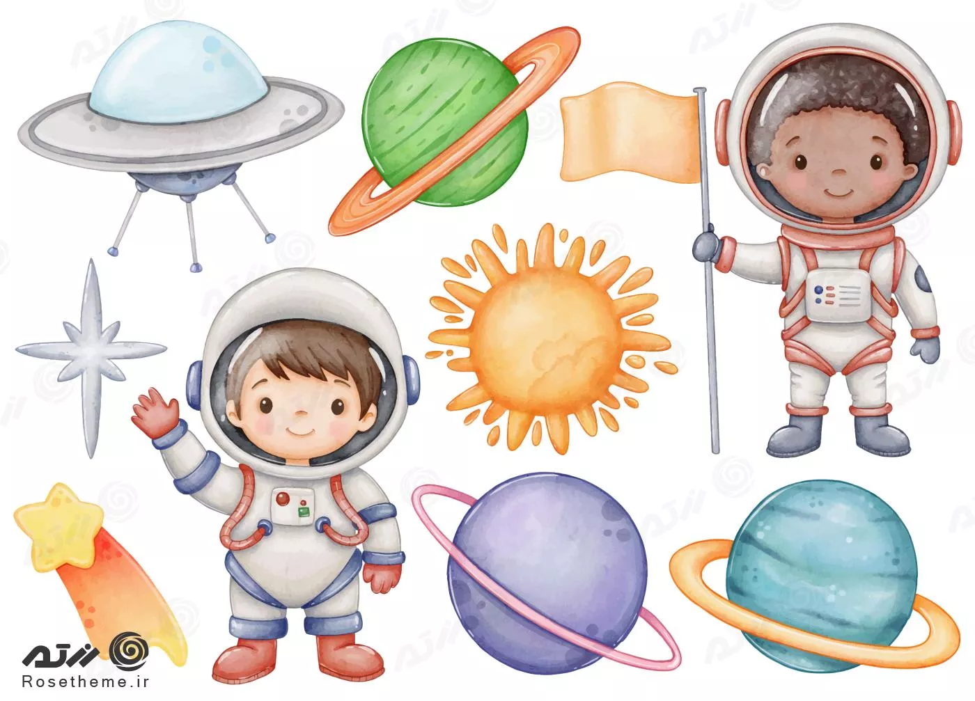 وکتور EPS مجموعه آبرنگ دست‌کشیده فضایی 27258